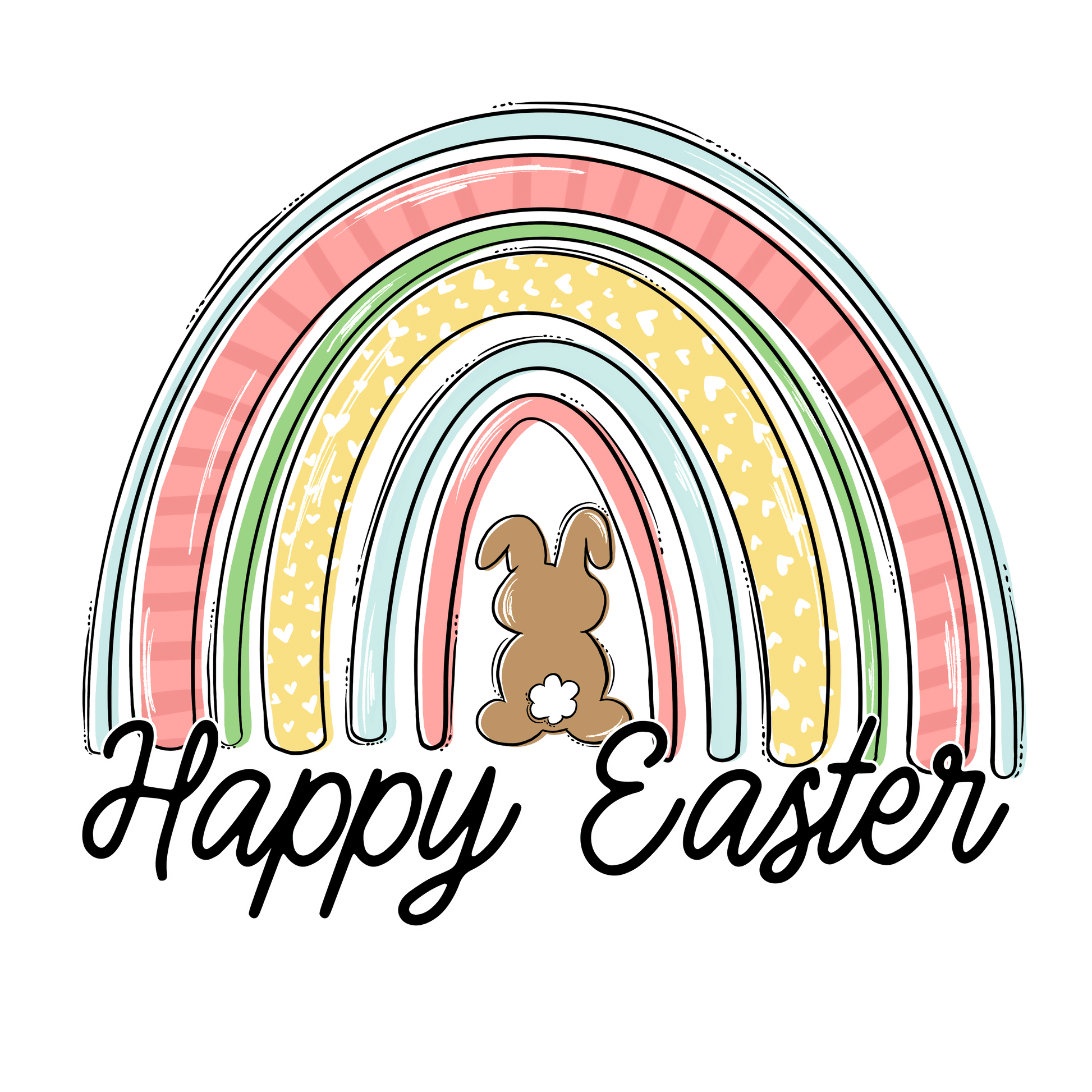 - Vibrant Easter bunny and rainbow design