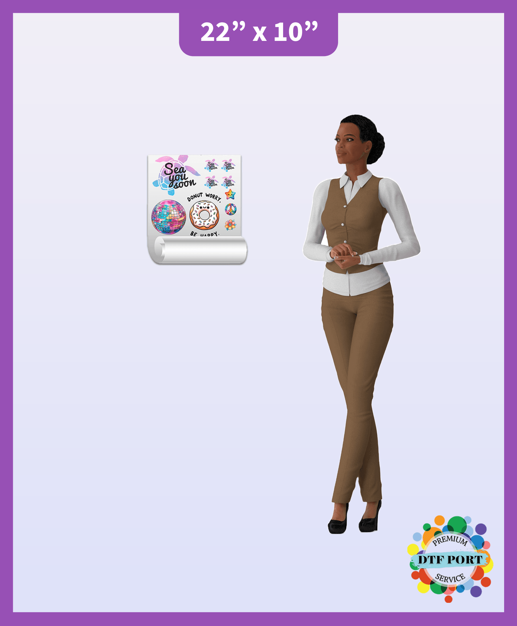 At DTF Center, we are proud to present our revolutionary UV DTF Gang Sheets. The UV DTF technology ensures exceptional results even on the most challenging surfaces. Our product stands out with its flexibility and durability, making it ideal for professional prints on garments, accessories, and various other surfaces.